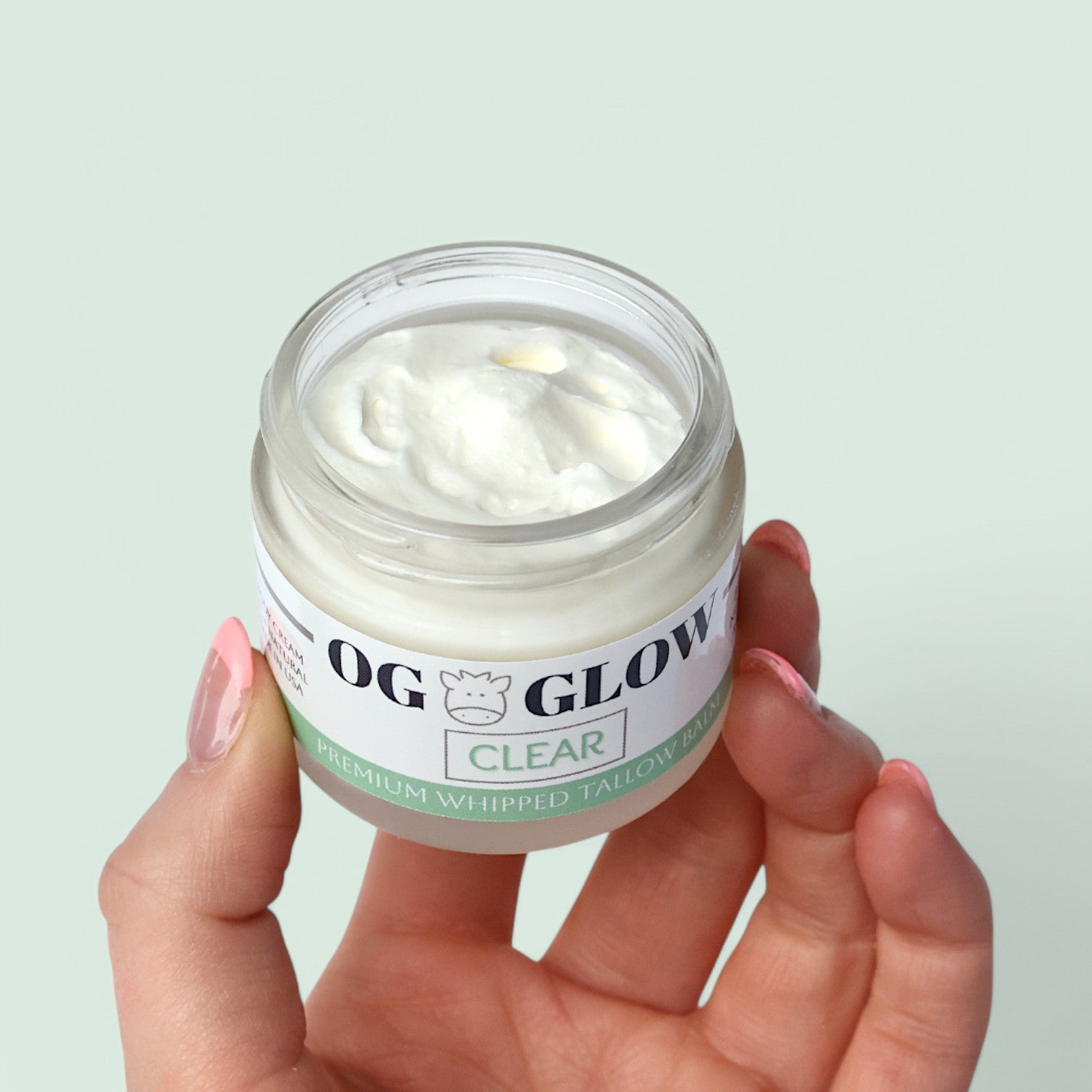 Our CLEAR balm, enriched with tallow, vitamin e oil, & pomegranate seed oil, promotes skin radiance while nourishing & balancing. The addition of tea tree oil combats blemishes & soothes inflammation, making it an ideal choice for healing & preventing breakouts.